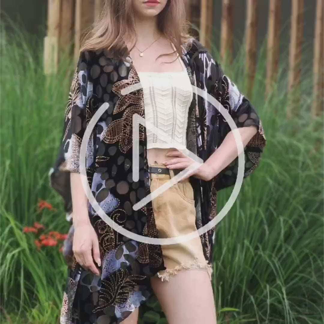 USHOWHEY summer velvet burnout kimono plus size swimsuit cover up