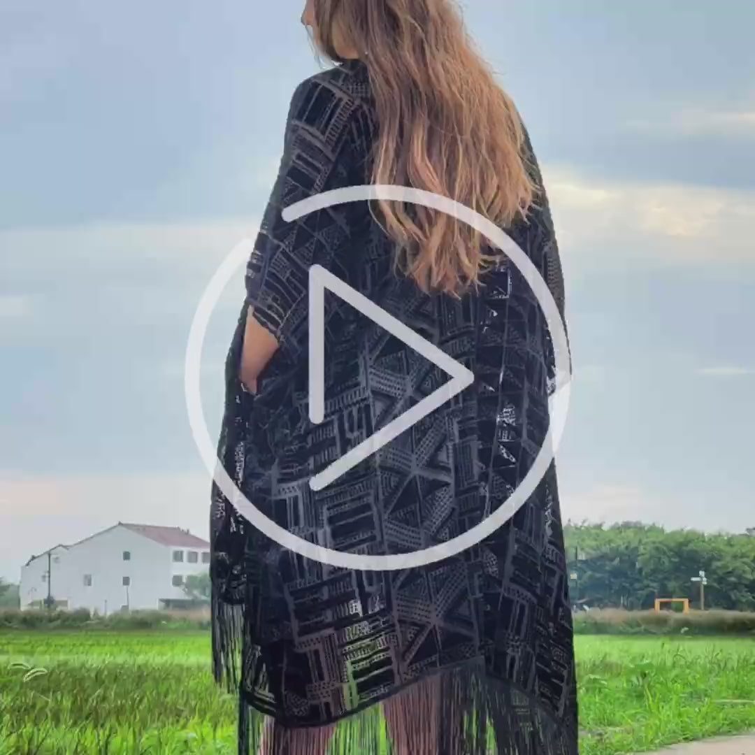 USHOEHEY long cardigans tassel for women kimono bathing suit cover ups